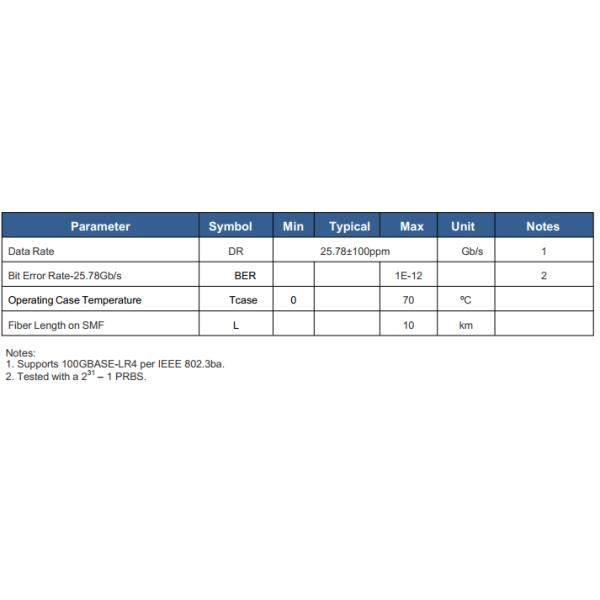 Product Name : 100Gbps QSFP28 Transceiver, Single Mode, 10km Reach,Module